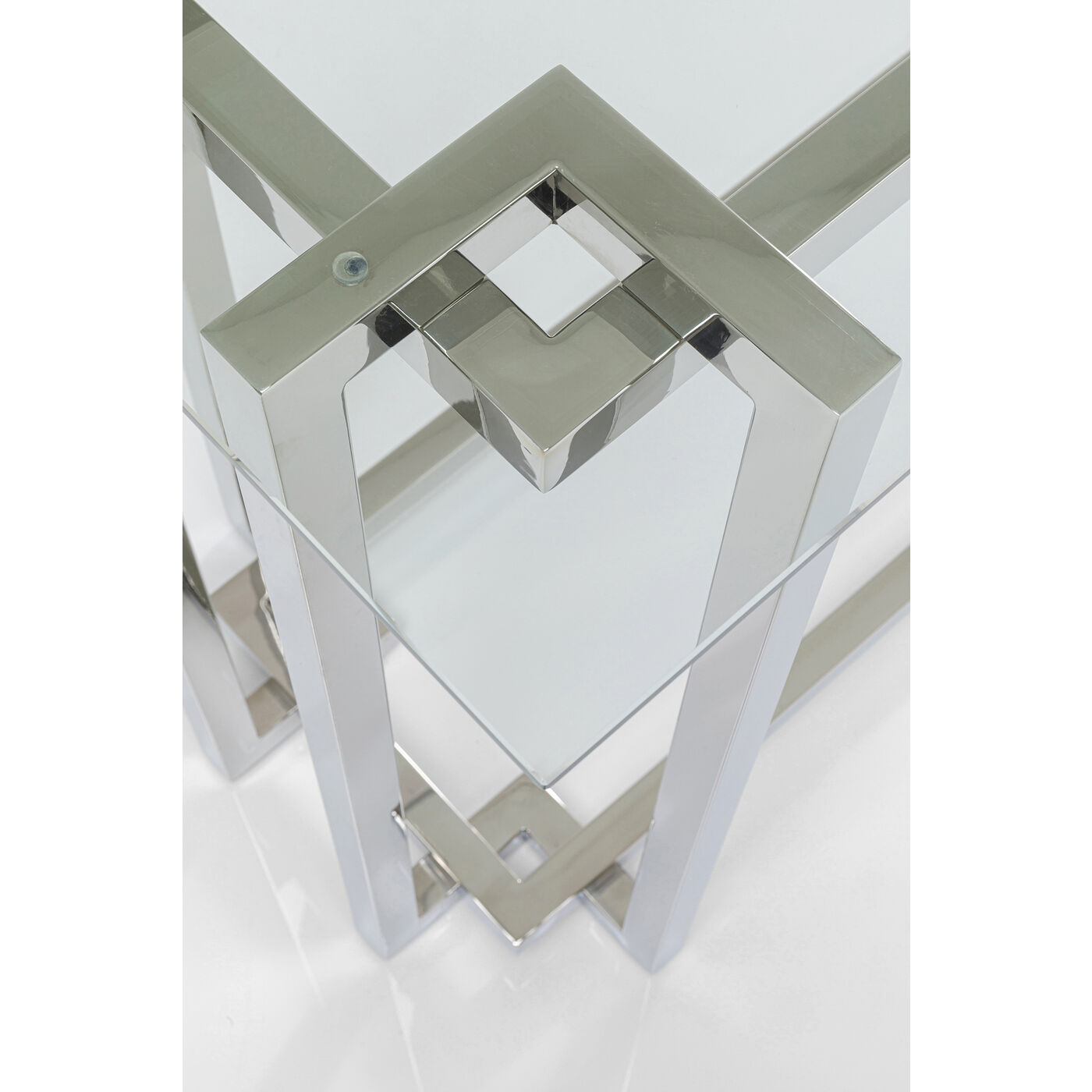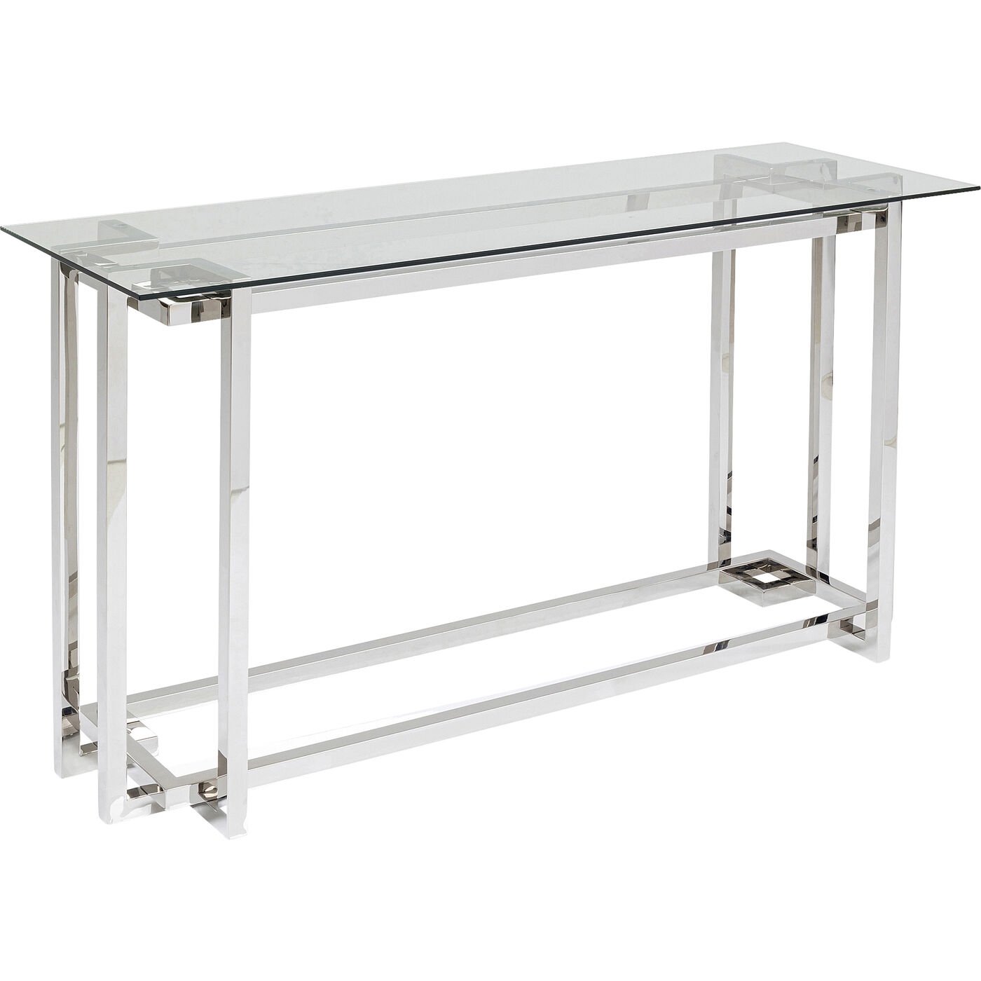 Die macht sich richtig gut in einem modern eingerichteten Flur, Wohn- oder Schlafzimmer: Dank ihres ansprechenden, eleganten Designs wird die Konsole Clara überall zum Blickfang. Ihr Gestell besteht aus hochwertigem, auf Hochglanz poliertem Edelstahl. Die Deckplatte aus 8 mm starkem Sicherheitsglas können Sie mit bis zu 20 kg belasten. Eine edle Optik, die ein Gefühl von Leichtigkeit und Schwerelosigkeit versprüht, verbindet sich bei diesem schicken Designmöbel mit einer hohen Funktionalität. Nutzen Sie die Konsole ganz nach Belieben als Sideboard zum Abstellen von Fotorahmen und Lieblings-Dekoobjekten oder auch als Schminktisch. In puristische Interieurs fügt sich das stilvolle Modell Clara wunderbar ein.
