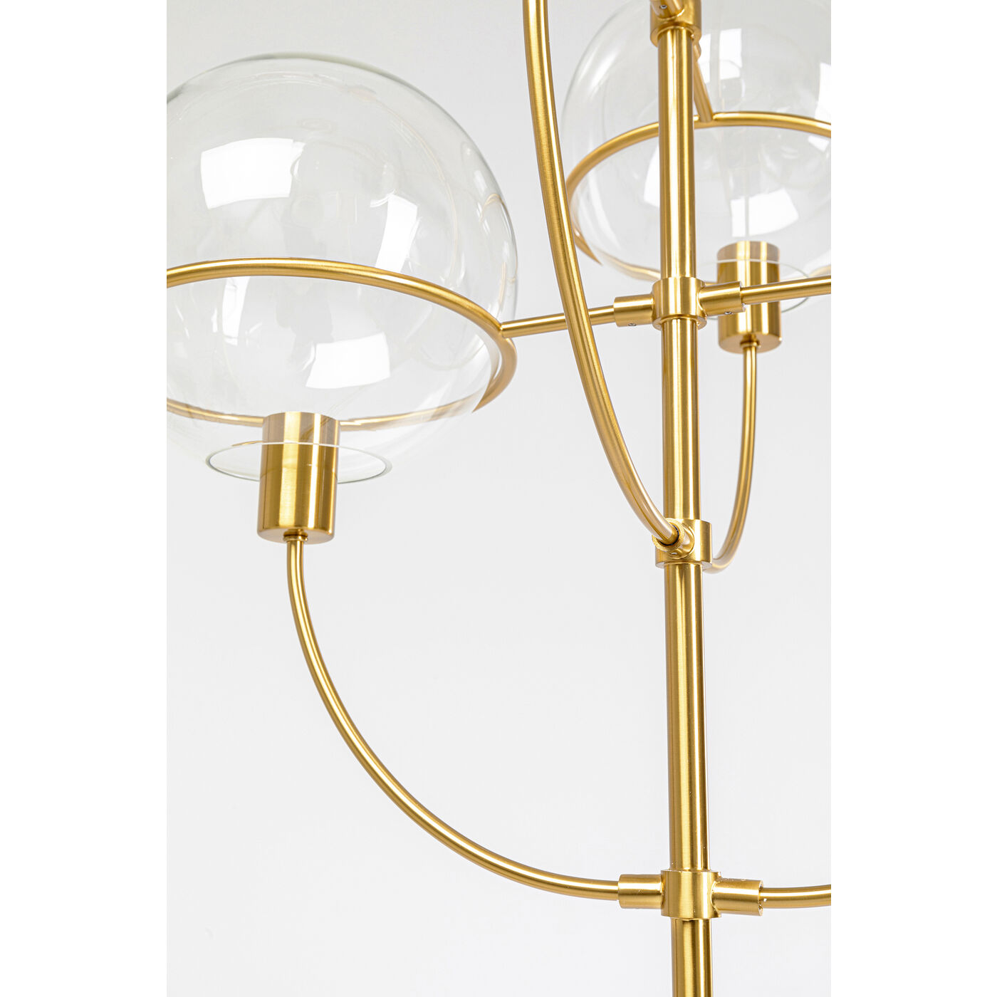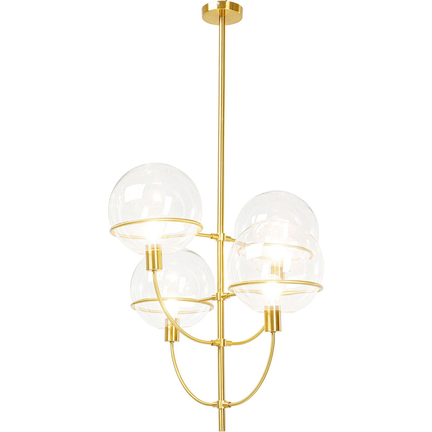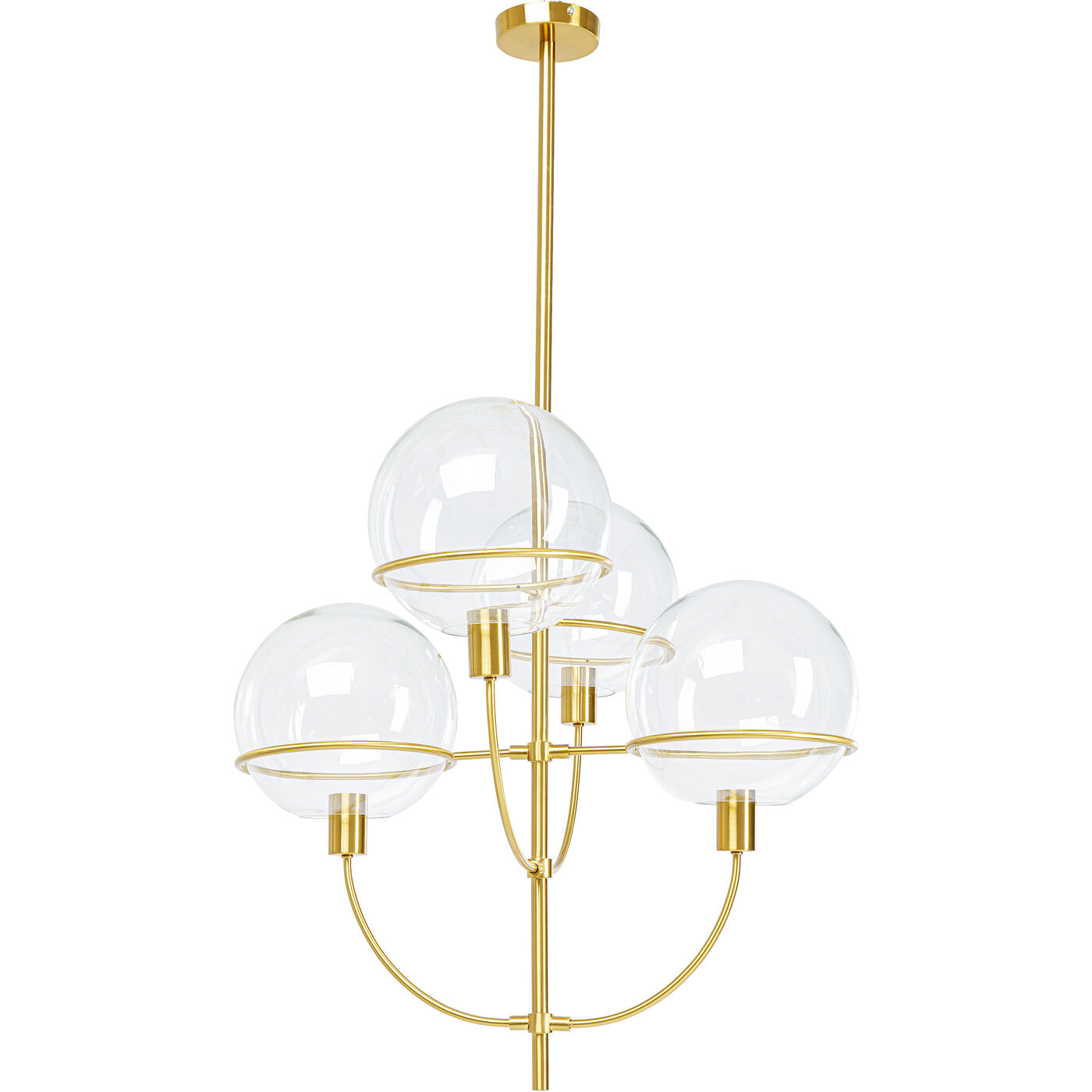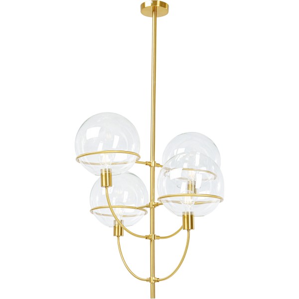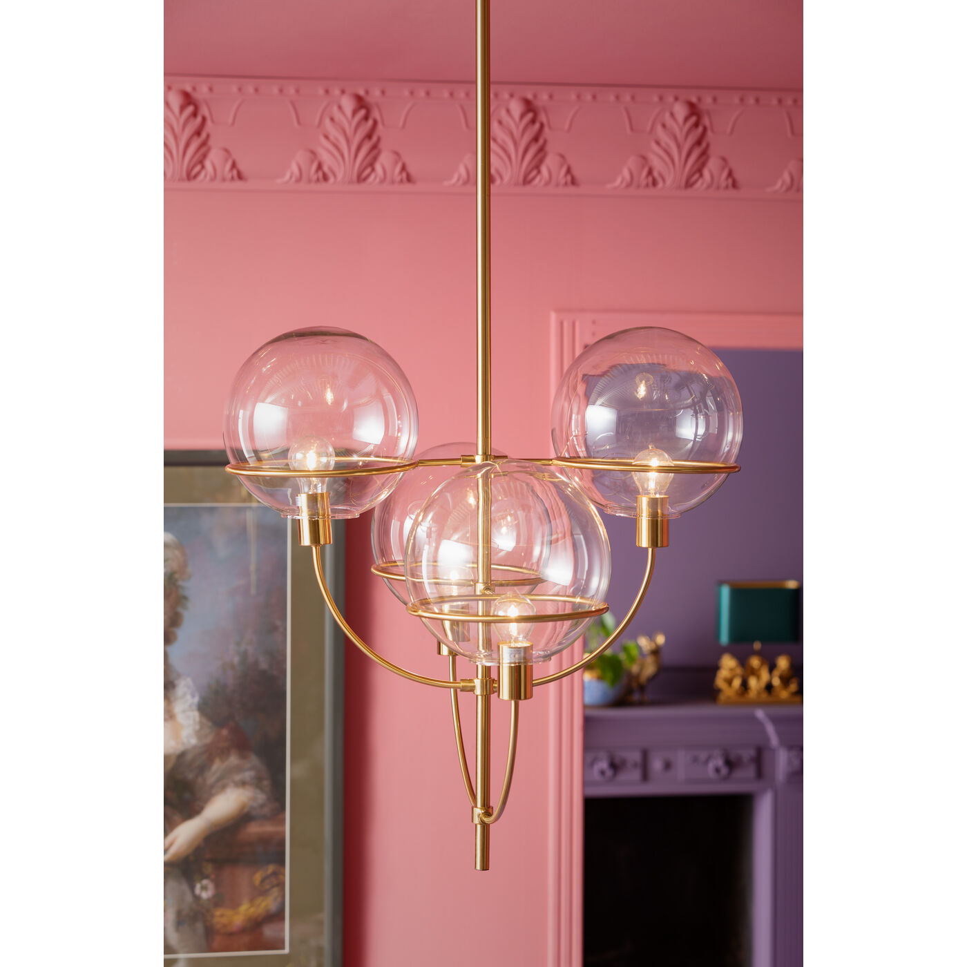 - Elegante Hängelampe in Messing, vier Leuchtenschirme in Kugelform aus klarem Glas